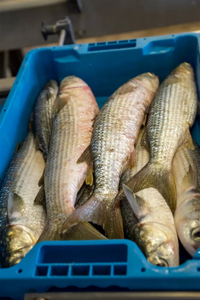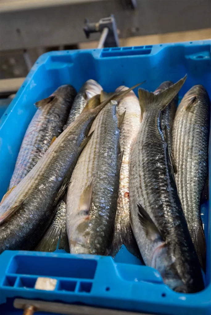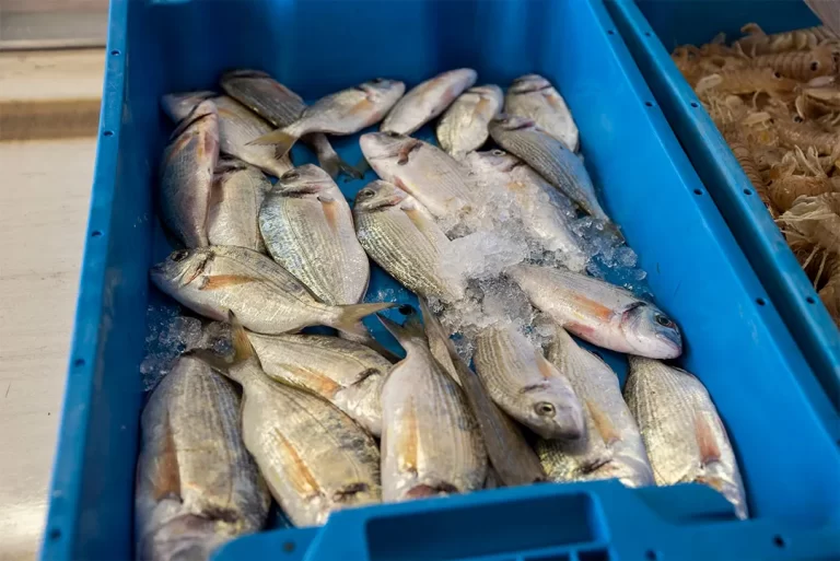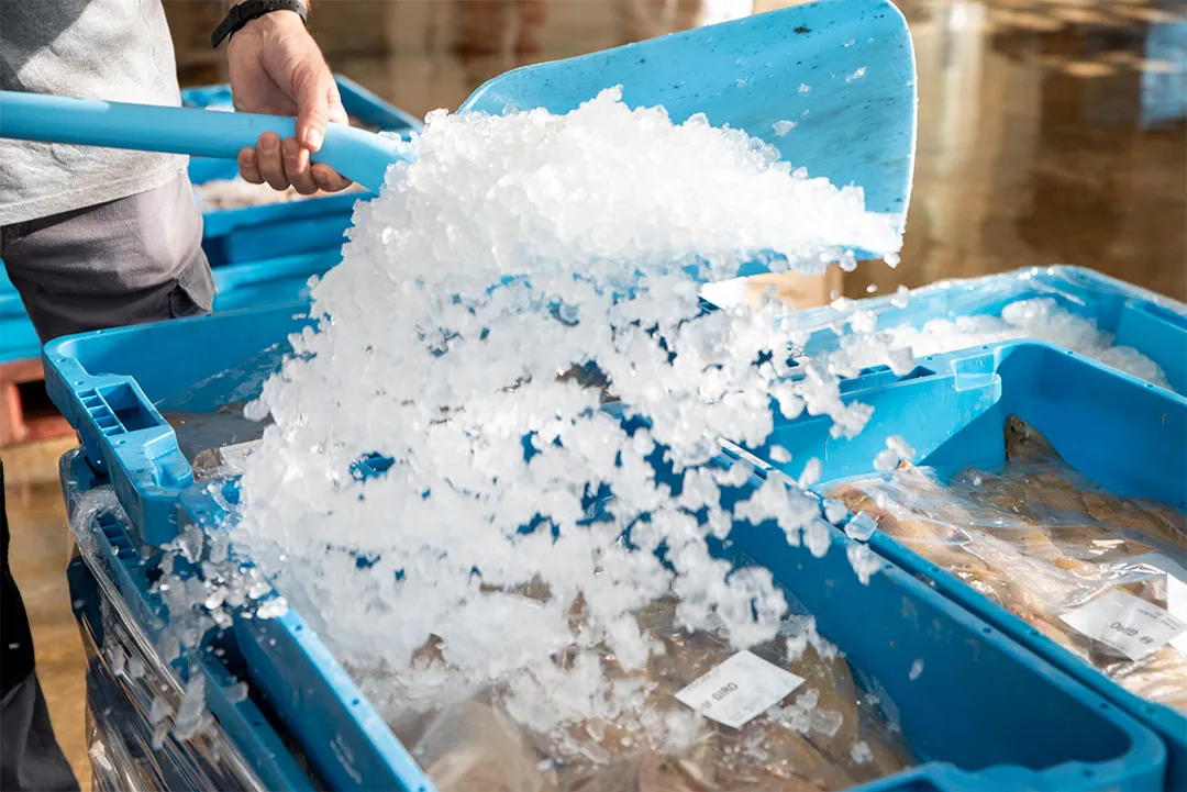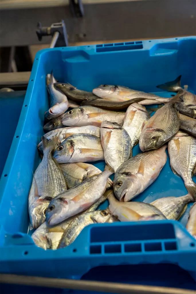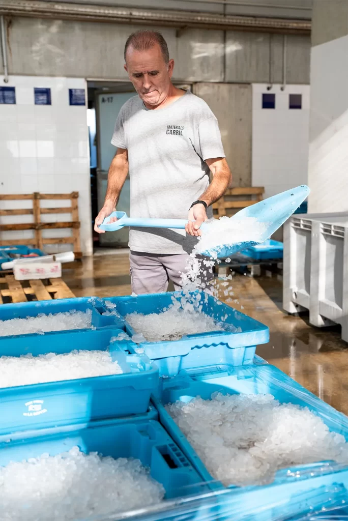 El pescado se encaja por especies y se transporta a nuestra base logística, para que al cabo de unos minutos, después de colocar hielo, embalarlo y protegerlo para el transporte, salga hacia el domicilio del cliente final.